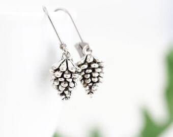 • Woodland Earrings - Gift For Her - Silver Pine Cone Earrings - Charm Earrings - Rustic Jewelry - Nature Themed Jewelry - Gift For Her
