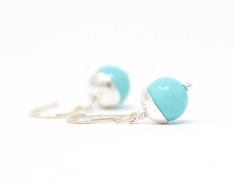 • Robins Egg Blue Earrings - Sterling Silver Earrings - Dangle Earrings - Robins Egg Blue Jewelry - Silver Earrings - Simple Earrings - Round