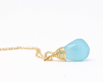 • Blue Gemstone Necklace - Gold Necklace - Sky Blue - Pale Blue - Gemstone Jewelry - Gold Jewelry - Gold filled Chain
