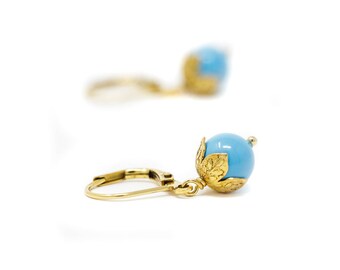 • Dainty Earrings - Blue Drop Earrings - Stocking Stuffer for Woman - Gift For Daughter - Sky Blue Earrings - Leverback Earwires