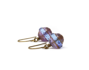 • Rustic Mauve Rough Glass Beaded Drop Earrings With Brass Ear Wires