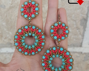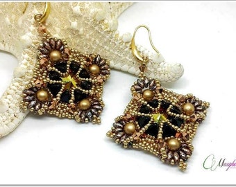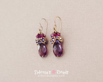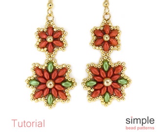 Bead Tutorial Amarante earrings pattern with superduo, swarovski and seed beads