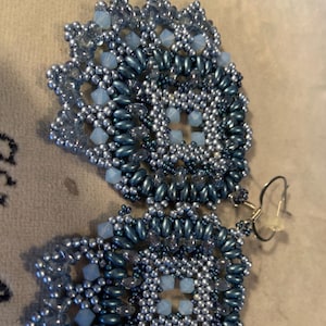See moreBead Tutorial Amarante earrings pattern with superduo, swarovski and seed beads