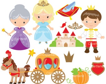 Cinderella Clipart, Fairytale Princess Cinderella, Digital Clipart