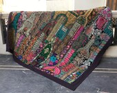 Vintage tribal banjara fabric recycled and patched up with cross stitches and embellishments designer Banjara Bedspreads