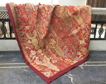 Vintage Indian Sari Patchwork Tapestry, Bedding,Ethnic Throw,Wall Hanging,Handmade Cotton Tapestry