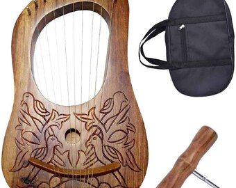Lyre Harp 4 Aves Grabado Rosewood 10 Cuerdas de Metal Con Cuerdas Libres Llave Y Bolsa