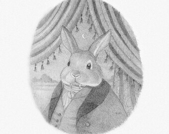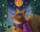Edición limitada giclée impresión de arte original Lucy Campbell. Lucy Campbell impresión, ruiseñor, chica, lámpara de luna, estrellas.