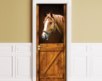 Pegatina para puerta / pared / nevera - Caballo en Stall. Peel & Stick Mural extraíble, Piel, Cubierta, Envoltura, Calcomanía, Cartel