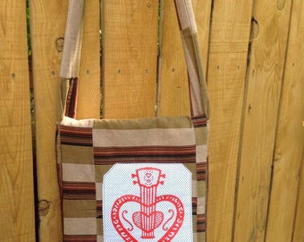 Cómoda bolsa de cadera Cruz avellana de la bandolera de la cuerpo pana rayas marrón acolchado con mandolina de corazón