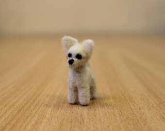 Hechos a mano aguja fieltro miniatura blanco perro, perrito pequeño, hecho a la medida, animal de la casa de muñeca, pequeño perro Chihuahua blanco, miniatura Chiwawa