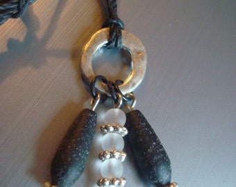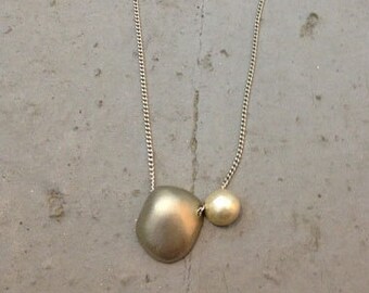 collar lago con dos cuencos, plateado mate y grafito, calma del rio, joyeria minimalista, collar de piedra zen, regalo para meditar,mama zen