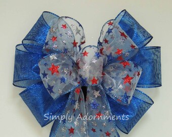 Patriotic Christmas Wreath Bow Red White and Blue Stars Bow Patriotic Wedding Aisle Decor Julio 4a Wreath Bow 4 de Julio Party Decoración