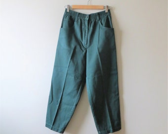 años 90 verde a medida pantalones cigarrillo plisado cintura pantalones Stretch mujer de US tamaño 6