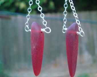 Pendientes colgantes de cristal de mar de espiga, pendientes colgantes de cristal de mar, pendientes de vidrio de mar rosa, pendientes rosas, pendientes verdes, pendientes rojos