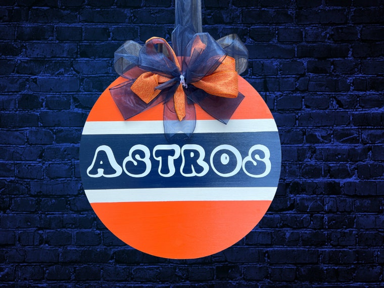 Door Hangers, Home Decor and more to REP H-TOWN! Houston Astros 15" round sign with custom made bow. -
