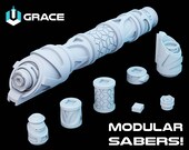 Here's how it all works: you can browse the Build A Hilt shop and select the hilt design you're interested in. Then, after purchasing the STL file, you can then print the hilt using a 3D printer. The hilts are made up of several parts that are designed to fit together seamlessly, so you can swap and rearrange the parts however you please and create your own ideal prop saber hilt.