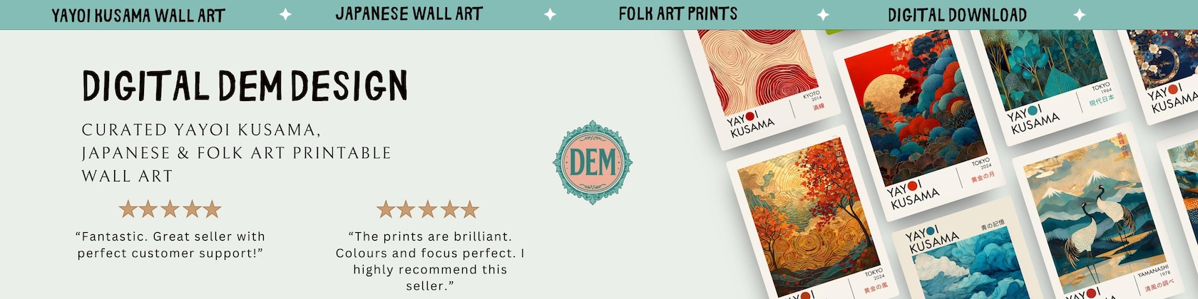 My shop was born from a love of bold, creative expression – especially inspired by the iconic works of Yayoi Kusama and the cultural richness of Folk Art traditions from around the world. Each collection combines modern digital artistry with timeless motifs, resulting in prints that are both visually striking and deeply meaningful.