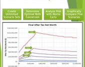 5 out of 5 starsThis is a great retirement planning tool. I used the Roth optimization macro to run different scenarios to optimize my net worth. It can also generate charts allow you to visually compares all the key finical trends of different scenarios easily.