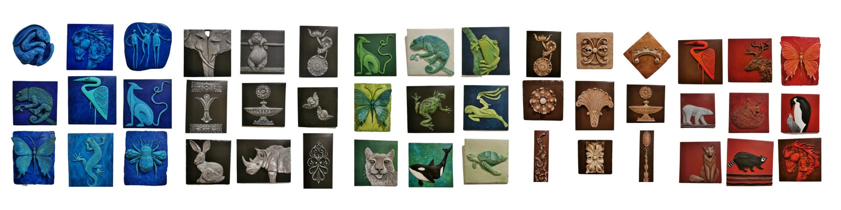 Each relief is hand cast in hydrostone from my mold off my original clay and uniquely hand painted.It is sealed with a protective coating.There is a hook or hooks and wire on the back ready for hanging. Each tile should be displayed indoors and safe from excessive water and abrasive tools. Clean with a soft cloth if needed. Handle with care so you may enjoy it for years to come!