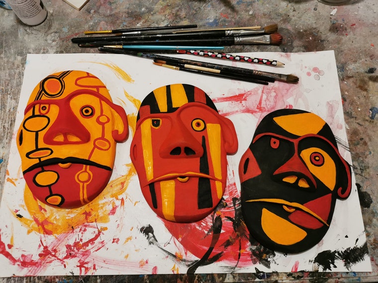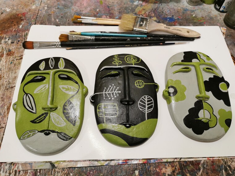 Hand painted Face Wall Sculptures Collection of 3 in Nature Series Palette of 3 colours. 8 x 5.75 x .5" -