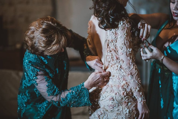 My mom and my best friend. Together with her, we create all the dresses that you see in our store. She develops patterns and makes dresses and suits.