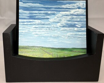 Welcome! Each of the fine art coasters available in the store are created using original paintings from my studio printed on eco-friendly wood and coated to be moisture resistant.