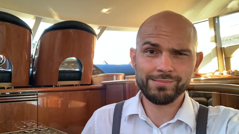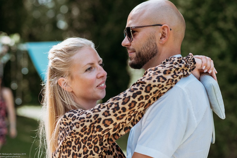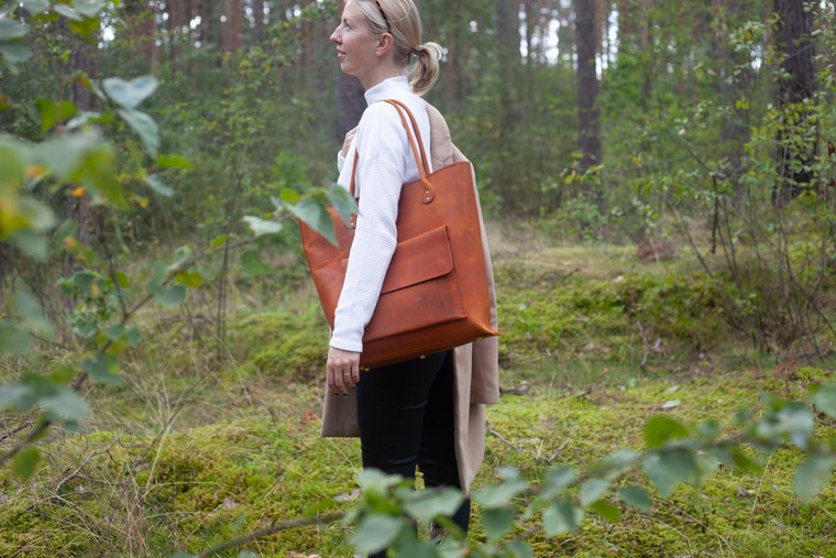 That's me with our handcrafted leather bag in Latvia's beautiful forest. -