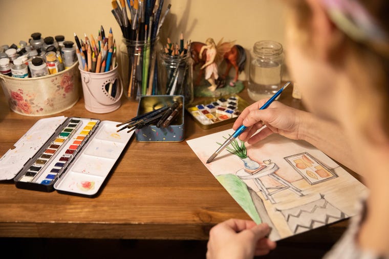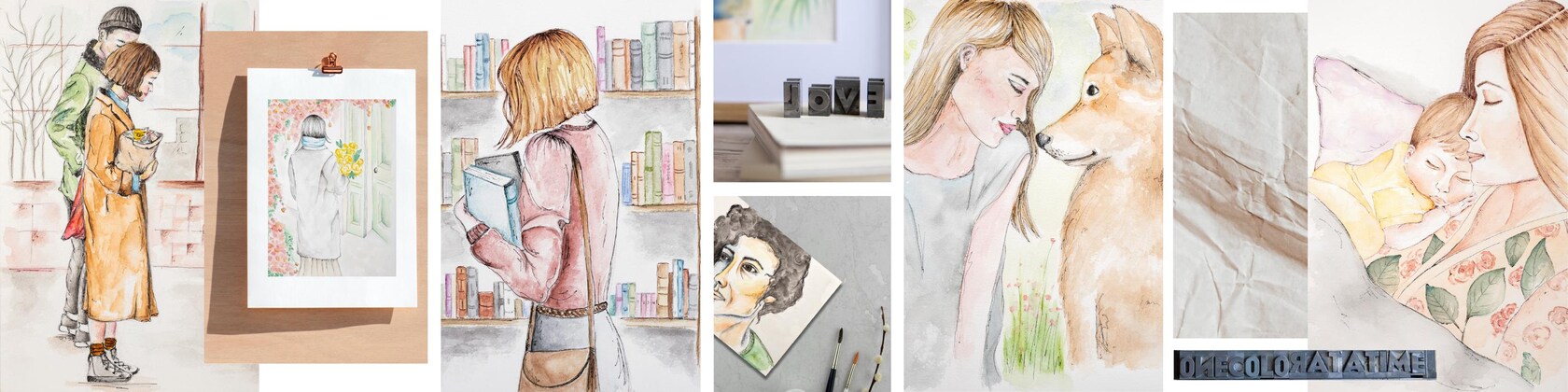 I am a native of Athens, Greece born and raised. I come from an artistic family, which has influenced me to this day. I have memories as a child wandering around my father’s lithography workshop. The large offset equipment towering over me as if I were taking a walk in a big city with the rhythmic sounds generated by the reproduction of the maquette and culminating in the miraculous process of printing. Even today the scent that emerges during my browsing through a book causes me to brim with memories and emotion. That emotion is the reason why I always carry a notebook with me, writing down thoughts and images of whatever inspires my mind. Through this, I realized the paper’s luxurious essence and the power of illustration and writing that would accompany me for the rest of my life. Given that I was an introverted child with an inquisitive mind, I developed the ability to visualize emotions and the written word that took me on a path to study art and design. Because of my long-term professional experiences but mostly through personal insight, I developed a love of observing experiences and capturing those images, emotions and sounds in order to share them with you through my paintings. I learned to pursue the path that life showed me and to cherish the beauty that surrounds me. Always looking on the bright side of things.