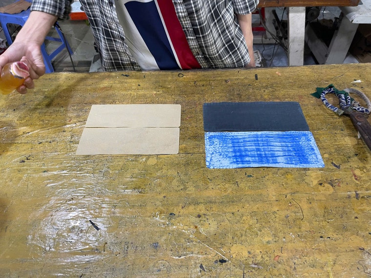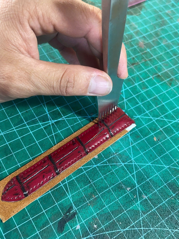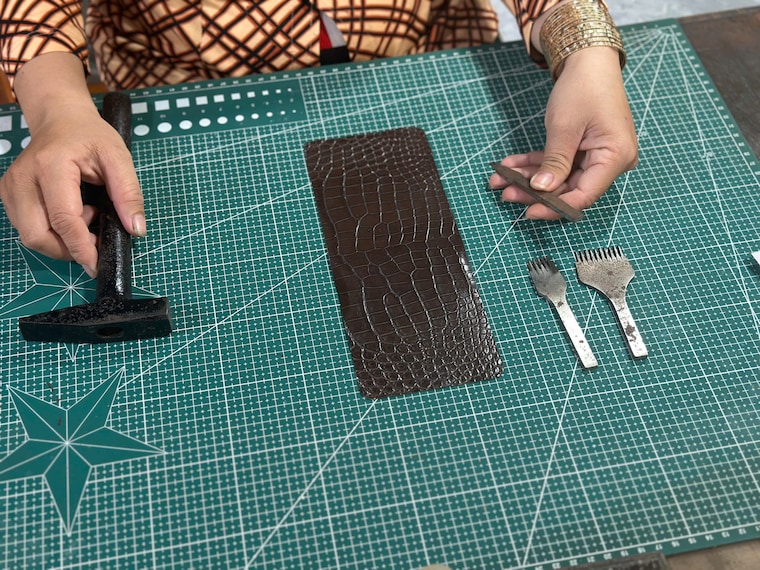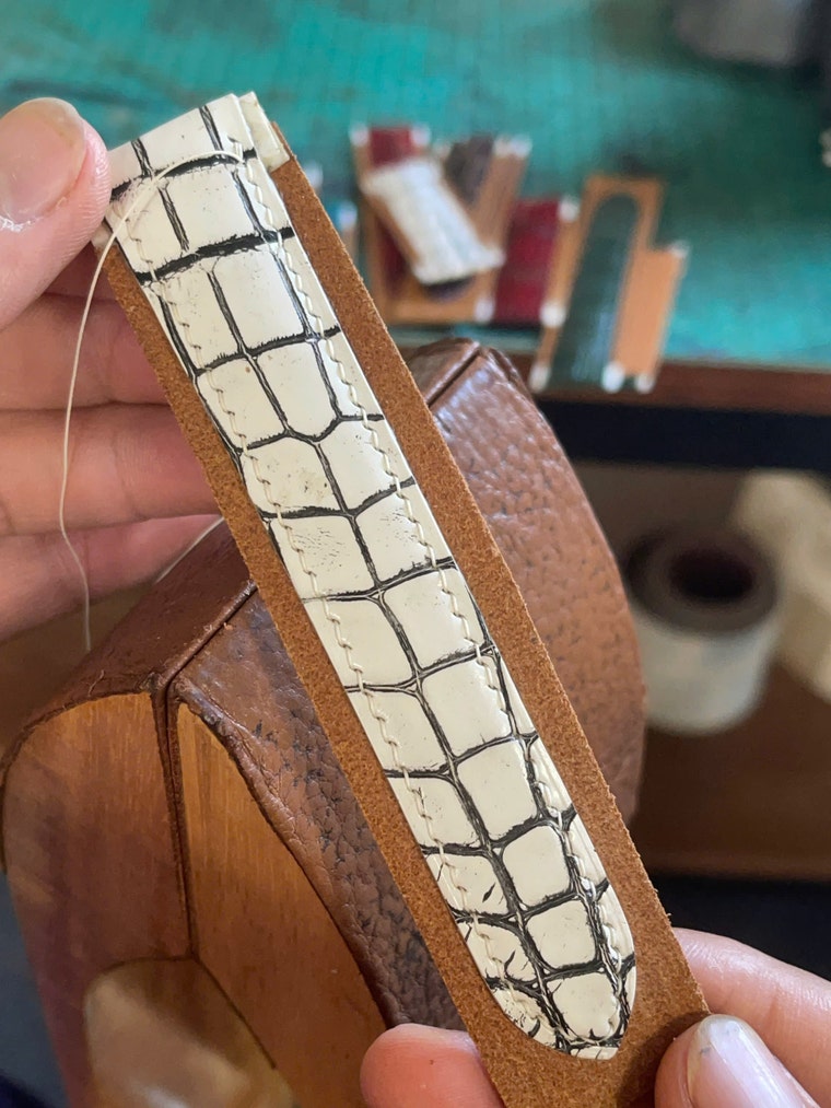 Men's wallets are completed entirely by hand. -