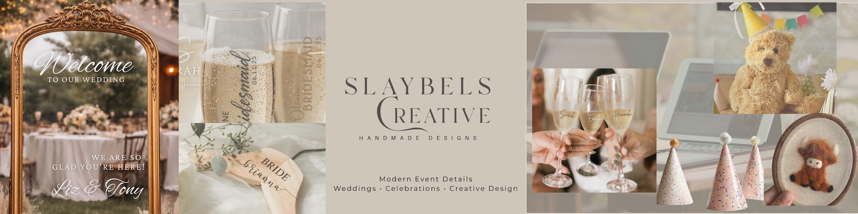 Hello, My name is Laura, owner and designer here at Slaybels Creative Handmade Designs. Whether you're decorating your home, planning an event, or looking for a unique handmade gift, I'm here to help you create beautiful little details. Cheers All!