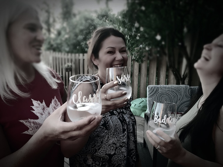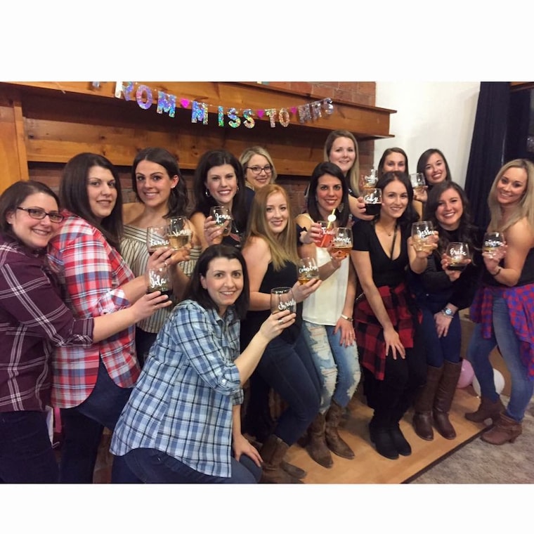 Sams Bachelorette...betcha not one girl misplaced their glass that evening...Super fun!!! Custom names for these ladies! -