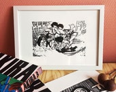 5 de 5 estrellasUna impresión en linograbado absolutamente PRECIOSA. No esperaba encontrar nada de esta escena, así que me sorprendí muchísimo y supe que tenía que pedirla para mi pareja, que adora el Porco Rosso. Una impresión preciosa en papel de calidad, y venía con unos adorables detalles hechos a mano. ¡Gracias, Julie!