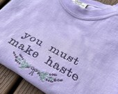 5 out of 5 starsCheyenne was lovely at picking the color of the towel and recreating her you must make haste design on to the hand towel. I am absolutely in love with it. I would order from her again, the quality is stunning.