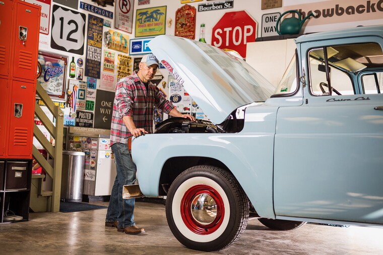 Photo shoot for local truck catalog in the ThrowbackCaps shop. -