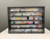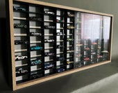 5 de 5 estrellasLa vitrina esta muy bien terminada y a su vez detalla,el marco de madera natural clara con sus ranuras para la puertas, los 36 departamentos en negro y las hojas correderas son de plástico transparente,muy recomendable para su precio, sin nada más que objetar