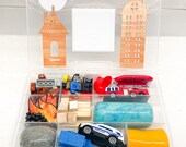 Item matched the description and got here very quickly. My son is going to love this. He's obsessed with firefighters and policemen. It's such a fun set and a great price. Contents shifted a little in shipping, but it was easy enough to put them back in their spots. One of the hinges of the container was broken in shipping, which was surprising because it was packed super well. Overall, I am happy with the item and look forward to all the wonderful pretend play it will help facilitate for my kiddo.