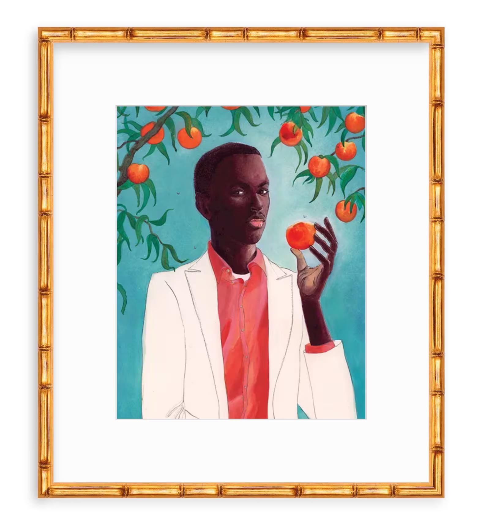 Artist Shadra frequently draws inspiration from her community and upbringing in Georgia, as seen with her winning piece “Peach,” a framed print created from her original painting.