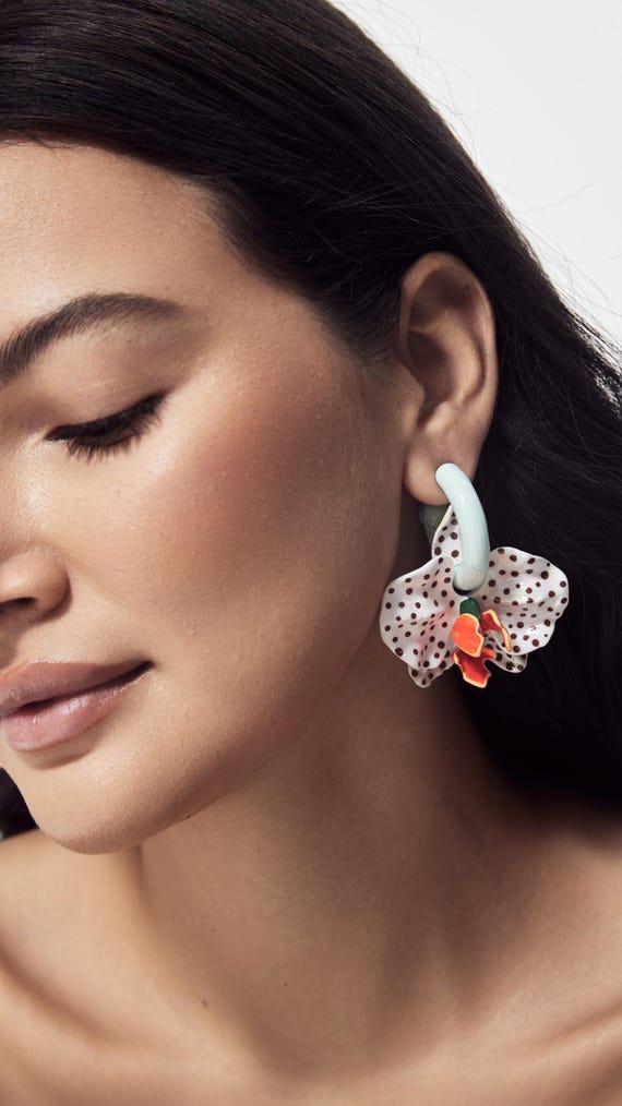 Inspired by her grandmother’s orchids, these hand-painted, 3D-printed earrings designed by Lina showcases her maximalist aesthetic and embraces her Latina culture.