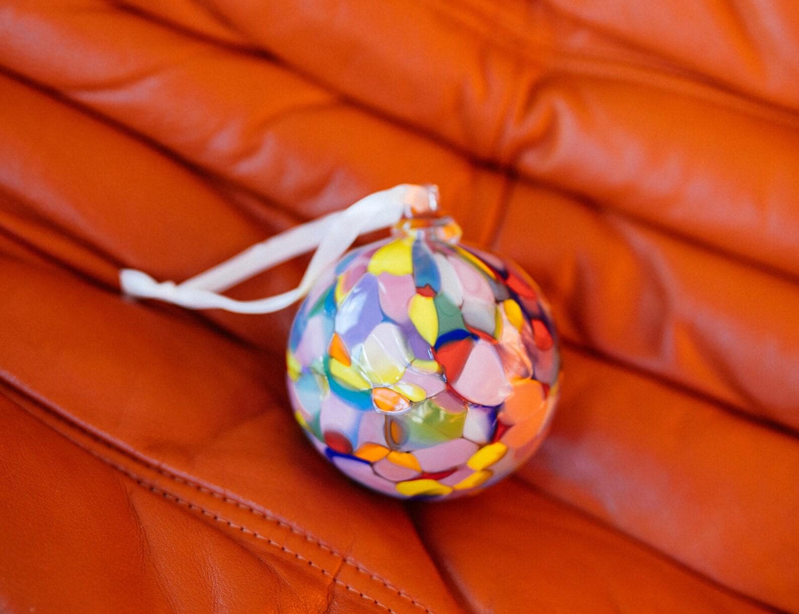 Glassblower Maria’s playful, one-of-a-kind ornament celebrates individuality and queer pride, bringing brightness into homes worldwide.