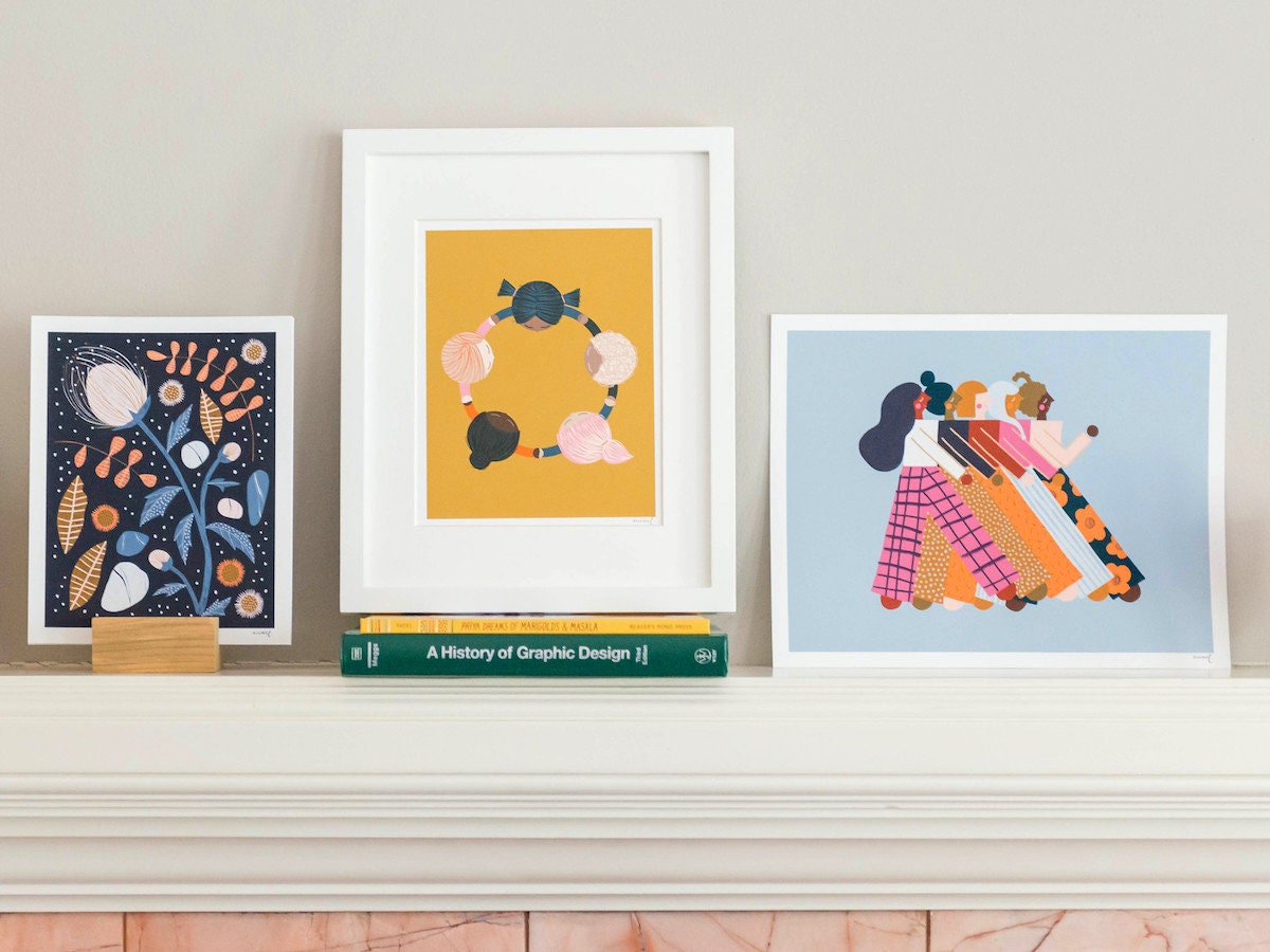 Let the colorful prints from this San Francisco-based artist—featuring women and girls from all over the world holding hands, reading books, and climbing mountains—be your daily dose of inspo. “I want my art to give people a moment to celebrate who they are,” explains illustrator Meenal Patel.
