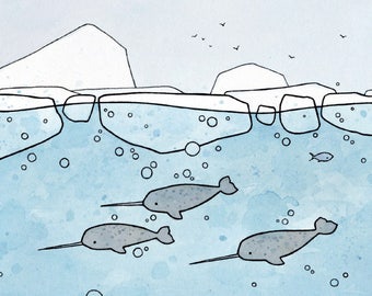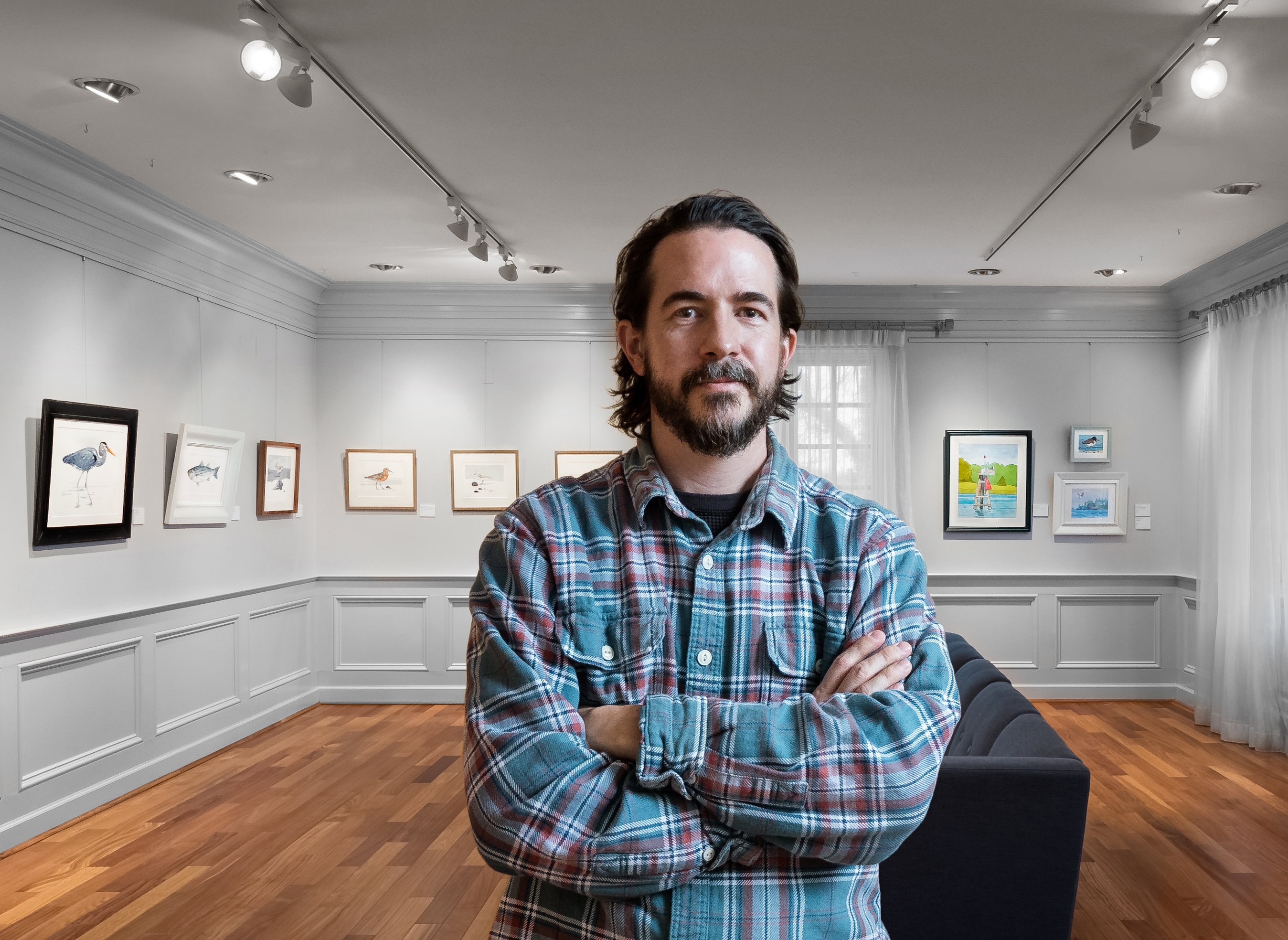 David works in two distinct styles--traditional paintings and whimsical illustrations, created with ink and watercolors. Take a look at his pieces, all of which are inspired by a love of the outdoors, hiking, birdwatching, beach combing, fossil collecting, and exploring.