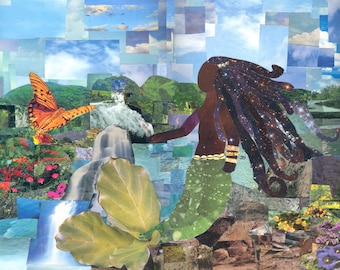 Visual artist and writer Mirlande was born in New York and currently lives in Baltimore, MD with her two children. Her vivid collages are inspired by nature, her children, and her Haitian heritage.