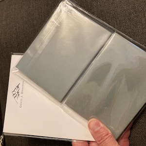 Materials: 50 sheets per pad, 28 lb bright white paper, digital flat printing, chipboard backing, padding glue, envelopes if purchased