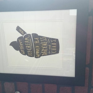 This elegant kitchen ice cream print is perfect for those who love ice cream. The ice cream print is an ideal house warming gift and complements any home decor. The ice cream poster is illustrated and printed on high quality paper, the simple and modern print adds style to any room. The wall art is uniquely designed and illustrated with the wording "Without ice cream, there would be darkness and chaos".