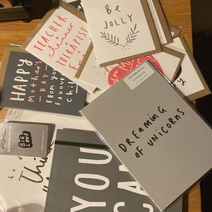 We have a choice of lovely colours for you to choose from. You can also choose the colour style to be a coloured illustration/lettering on a white background, or the reverse which would be a white illustration/lettering on a coloured background. You can also choose 'black and gold' which are our signature colours, this option is printed on a white background.