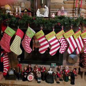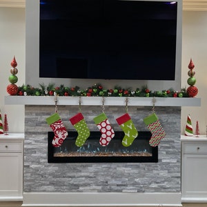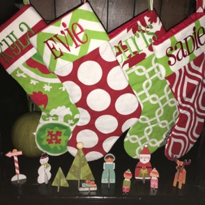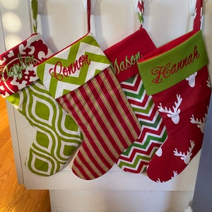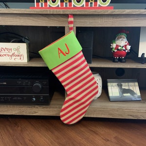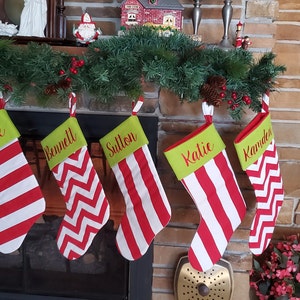 Personalized Christmas Stocking - Embroidered Family Christmas Stockings - Custom Green and Red holiday mantel decor - Handmade - Embroidery