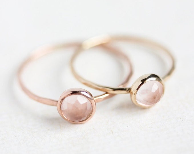 Rose quartz rose gold ring, Valentines Day gift, 14k gold, rose cut, pastel pink, delicate gold ring, gift for her, mothers day, stack ring