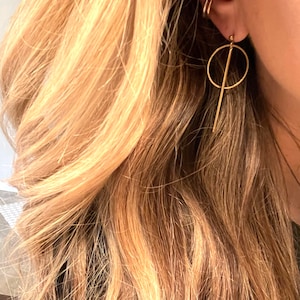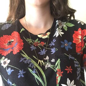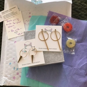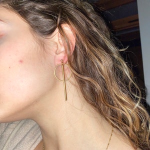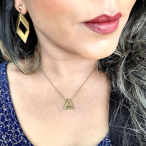 Two brass hexagons paired together (7/8" tall), swinging from a simple brass chain (nickel free). It is a sleek & lightweight necklace for the lover of simplicity, shapes, and minimal design. I love the symmetry and balance between the two charms, and how they look stronger together.