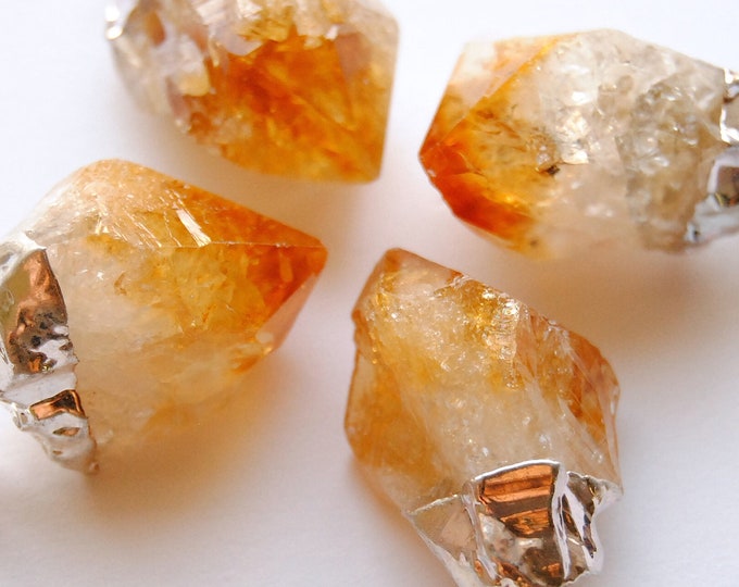 SALE - Raw Citrine Crystal Necklace - Medium - Silver Plated - FREE US Shipping